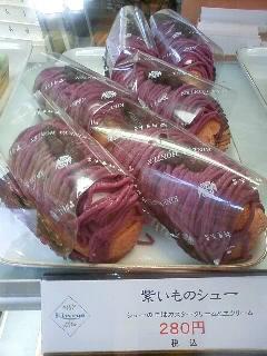 シューの上に、たっぷりの紫いものペーストを絞りました♪