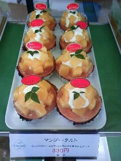 たっぷりのクリームにマンゴーをのせた鮮やかなケーキ☆