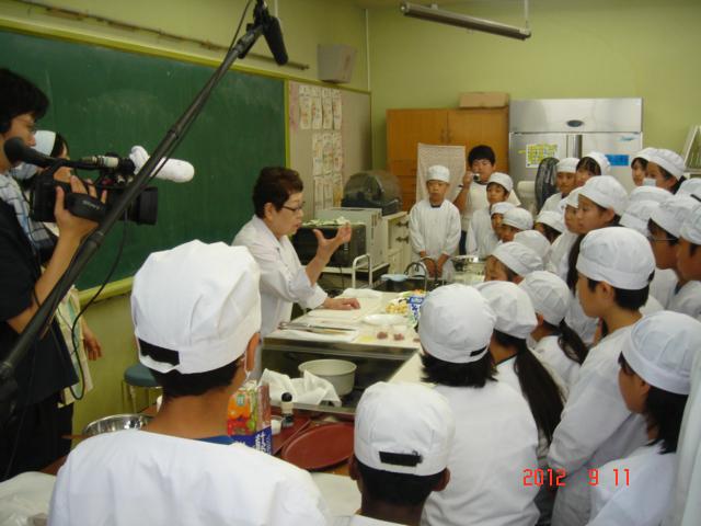 9月11日は山形大学付属小学校で[味覚の授業]を行いました。講師を古田久子先生にお願いして[べにばな]を食べることについてのお話と調理実習でした。牛乳を酢で凝固させたカッテージチーズに、フルーツと処理済べにばなを入れたデザート。チーズができるときのホエーには、いろいろな野菜を入れてミネストローネスープに。古田先生が、いつも言ってらっしゃる[料理は目で食べるのよ!]のとおりに、とってもきれいな出来上がりになりました。べにばなを食べたことのない子たちが多く、新鮮な驚きをもってくれたようです。在来作物への関心が高く、映画を見た子や庄内のアルケッチャーで食事をせがんだ子がいたり、なかなか深みのある授業になったと思います。担任の武田先生はじめ、学校には大変お世話になりました。古田先生、お疲れ様でした。