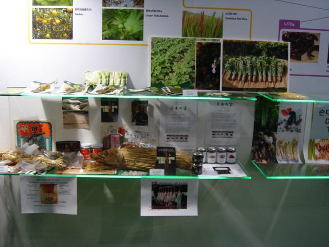 昨日、韓国で行われたAsioGustoから帰国しました。 連日、晴れ。すばらしい人出。 韓国の人たちは、食べることを楽しんでいることがよくわかりました。 私は、山形のアルカ三種の紹介と紅花のワークショップをしてきました。アルカの紹介区域は、イタリアのサローネデルグストよりきれいでわかりやすくなっていて、気持ちよく展示できました。横沢さんが花作大根を取っている写真が壁面に掲示されていました。甚五右衛門いもをはじめ日本の展示場所は、多くの皆さんが興味をもって見ていて、二日目には床が抜けたとかでロープが引かれました。花色大根・雲仙こぶ高菜・高知実生ゆずの紹介と試食では、花作大根が好評でした。一緒に行った閔さんのは韓国の大根と似ているからのようです。