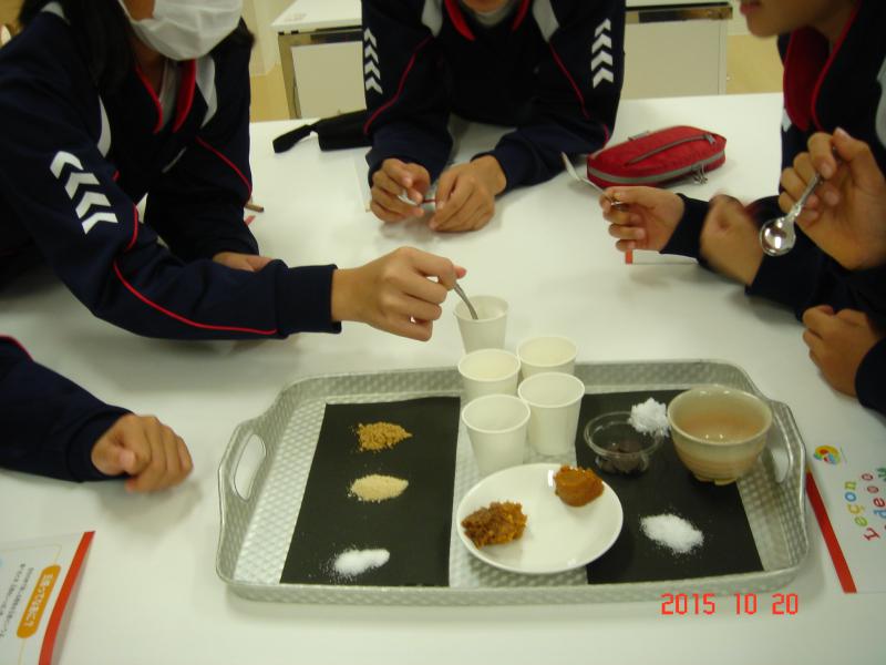 6年A組とB組の児童が、味覚の仕組みと味蕾の働き、5味の体験と地域の良い食材について勉強しました。