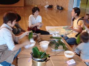 もち米を笹の葉で包んで、い草で結んでお湯でゆで、