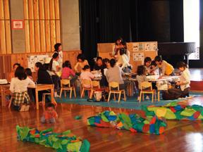 「遊ぶ」コーナーでは折ったティッシュにインク