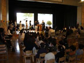 入学式では、お母さんと手をつなぎ子どもたちが入場し