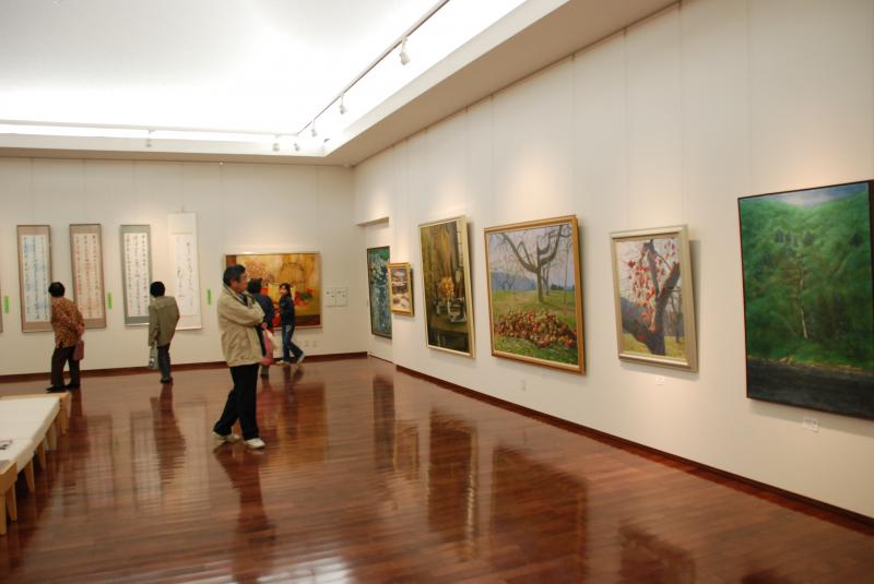 ▼白鷹文化交流センターのギャラリーでは芸術祭の展示部門が飾られている。