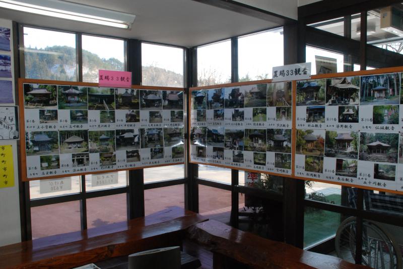 このあゆ茶屋の展示ロービーには、季節的に模様替えをしているようですが、今回は「置賜33観音」の写真が飾ってありました。