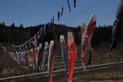 あの最上川をいっぱいに、こいのぼりがゆらゆらと、高く泳いでいます。