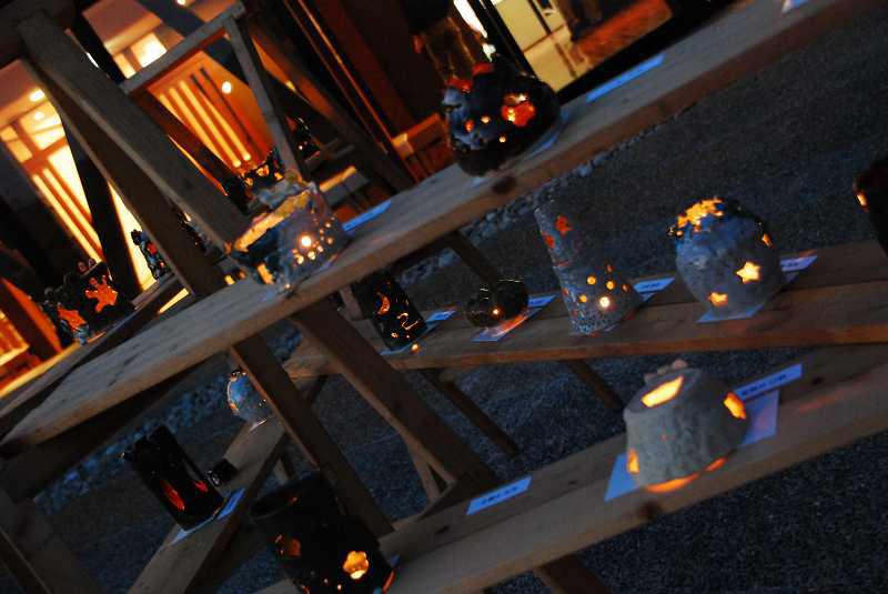 10月2日(土)の夕方には、8月末に作ったミニ灯篭に点灯されて、あゆーむの グリーンイベント広場に、素敵な光の芸術の世界が出来上がりました。