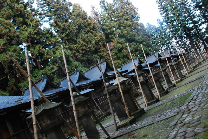 昭和59年に国指定史跡として登録された、上杉家御廟(米沢藩主上杉家墓所)も、これからくる冬の季節に備えて、灯篭には倒壊防止も含めてか、支柱が組まれて雪国らしい姿が見られます。
