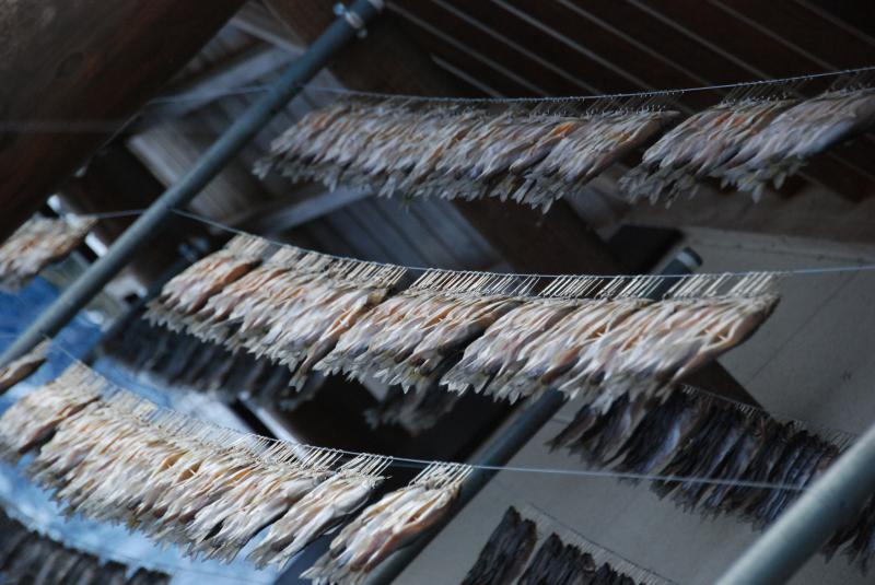 鮎の内臓を取って下地処理をしてから、最上川からの冷たい風を受けて、寒風干しが出来上がります。