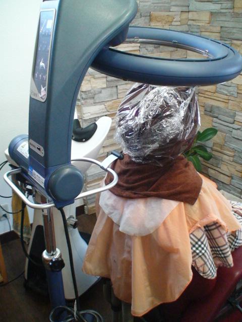 ▼今回のクリープ期では蒸しタオルを巻き10分遠赤で加温