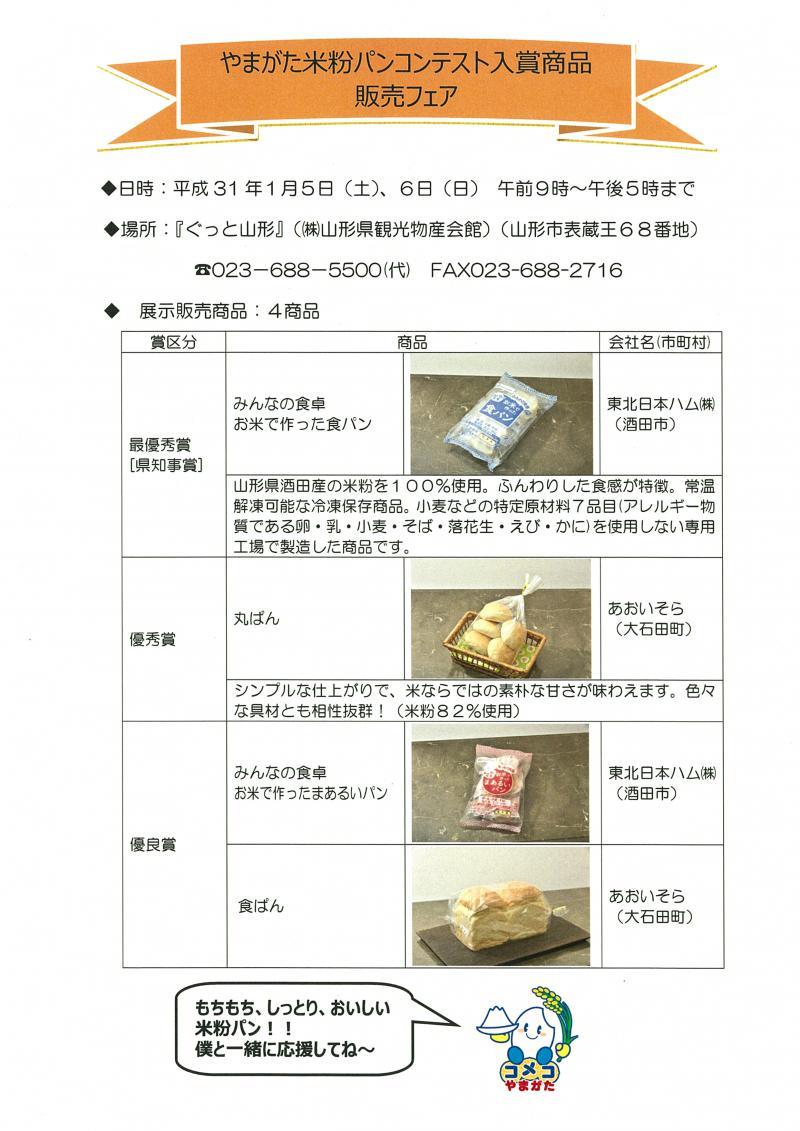 このたび、県内最大級の観光スポット『ぐっと山形』(且R形県観光物産会館)と協力し、 やまがた米粉パンコンテストで入賞した商品の販売フェアを開催いたします。!
