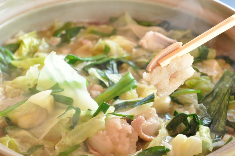 もつ鍋です。ぷりぷりとした地元産の牛モツに