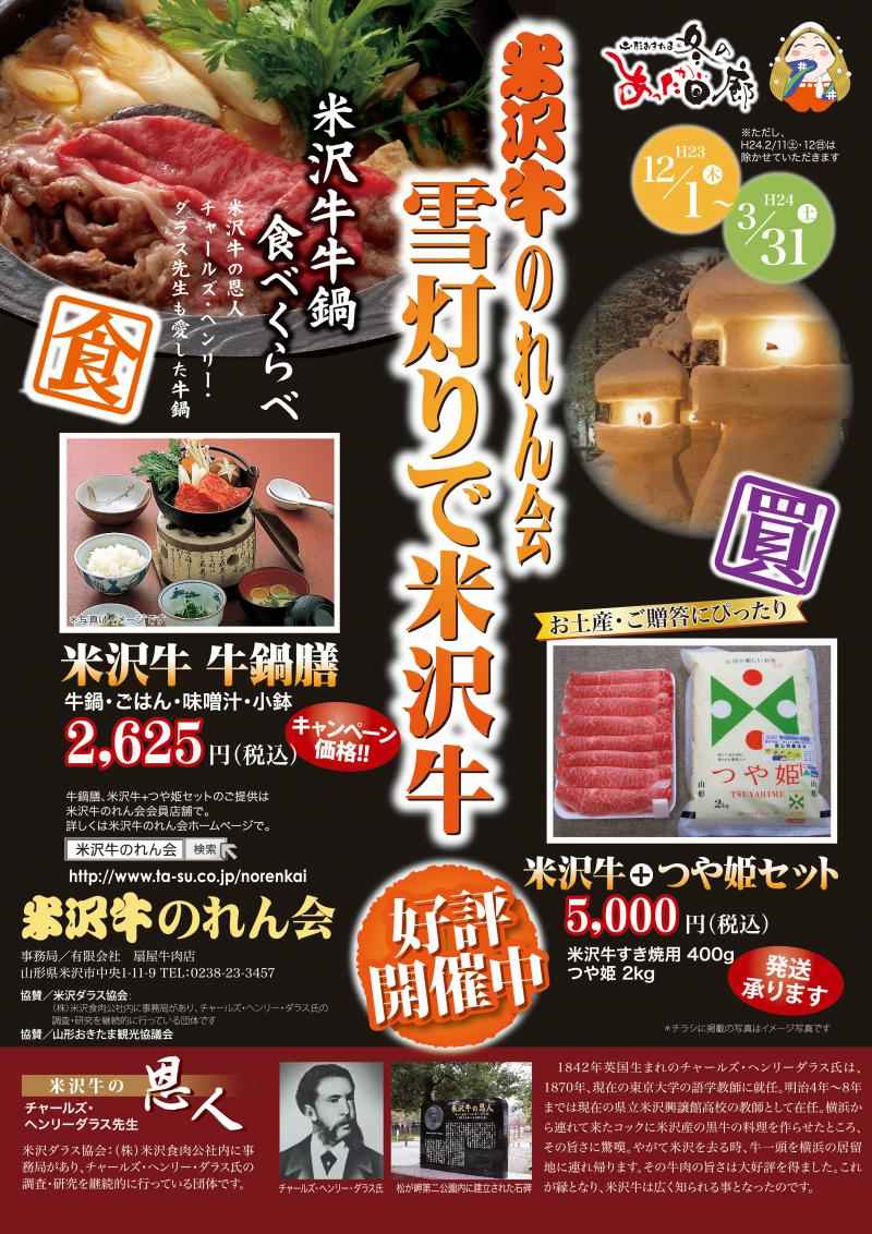 冬のキャンペーン商品「雪灯りで米沢牛 牛鍋膳」を