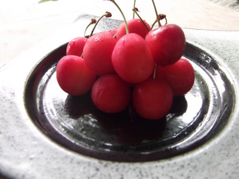 実は、真っ赤に色づいたさくらんぼは、おいしいと感じさせるマジックをひめています。もともと「赤」や「オレンジ」という色は食欲の中枢を刺激させ活性化させます。食欲不振な方や活力を高めたい方はおすすめといいます。また「赤」と「緑」という色合わせは捕色の関係にあり、「赤」の暖色系統をきわだだせて、視覚に程良く刺激をさしいれます。「さくらんぼ狩り」にいった時、「赤」のさくらんぼと、新緑の「緑」のコントラスト…もうすでに「色彩と食欲のマジック」に陥っているわけです。