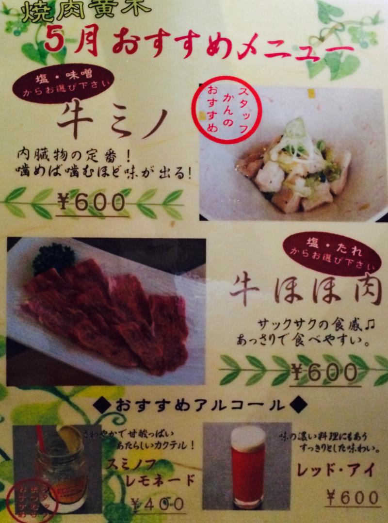 今回は、5月の焼肉黄木のおすすめメニューを