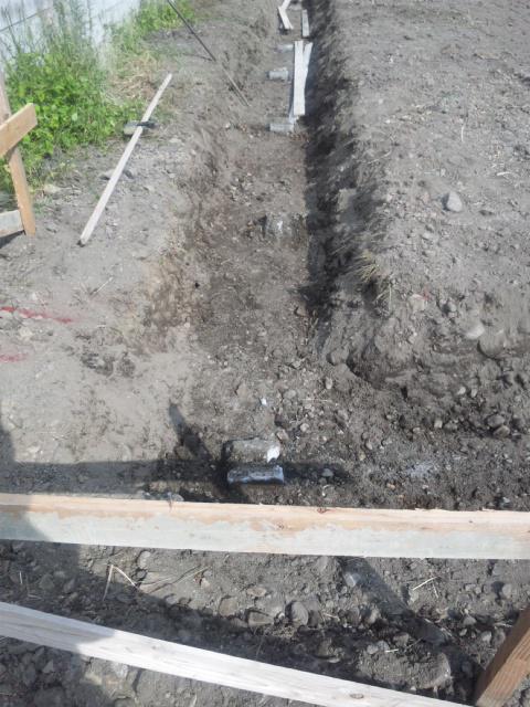 床掘りが始まり所定の高さに掘るとPC杭が頭を出しました。