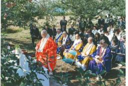 慈恩寺のご住職らによる「智慧蜜りんご」のご祈祷風景。