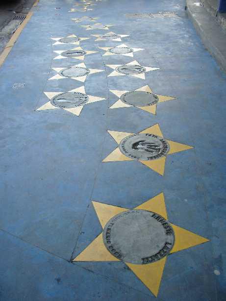 こぉ〜して、いろんな選手の名前が書かれたお星さまが、一つひとつ歩道(?)にたくさん埋め込まれてたくまよ!