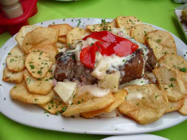 お次の、牛フィレ肉のステーキもけっこうなボリュームくまよぉ〜っ♪ しかもポテト付きっ!笑