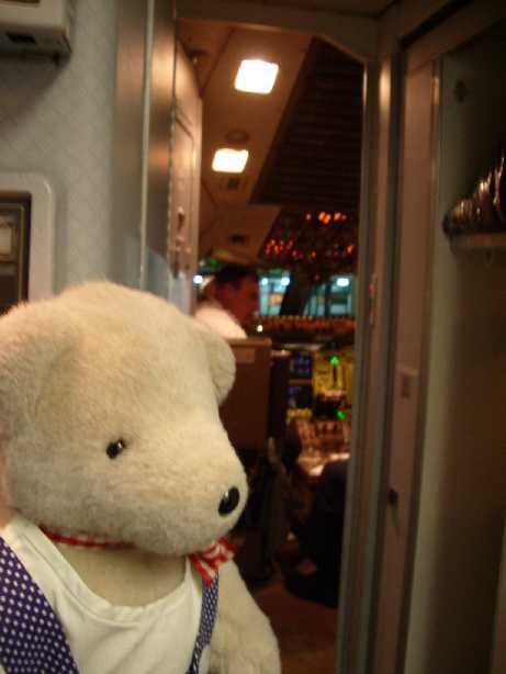 ボクが飛行機さ乗ったら、コックピットの扉が開いてて、パイロットさんが雑談してるのが見えたくまよっ★☆