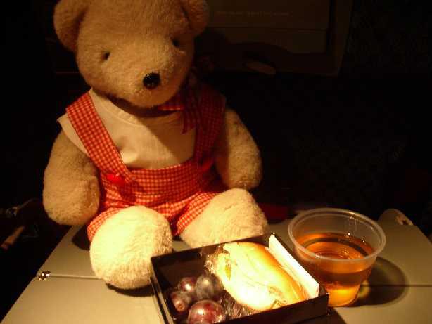 離陸して約6時間がたった頃、軽食サービスがあったくまよっ♪♪♪ うひっ☆v(^(エ)^)v