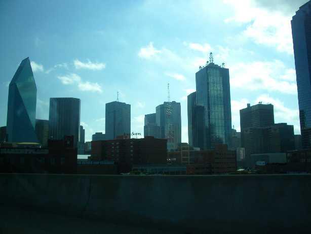 ダラス市内の高層ビル群が見えてきたくまよ!