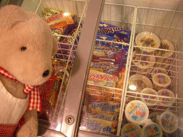 お店の隅っこの方に、アイスクリームが入ってる冷凍庫もあったくまよっ♪
