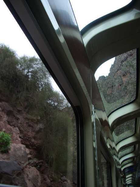 アンデス山脈を縫うようにして電車が進んでたくまから、もし窓だけだったらその雄大な景色がおさまらず、眺めるコトができねかったくまよっ☆★