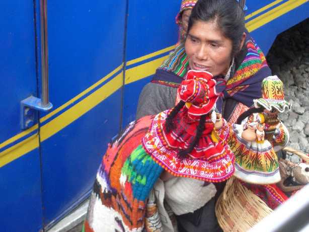 途中、停車した駅で、ペルーの民族小物をたくさん持ったオバちゃんが売りに来たくまよっ☆