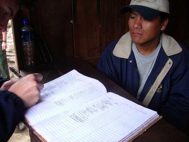 ▼ノートにお名前と登山開始時間を記入するくまっ☆
