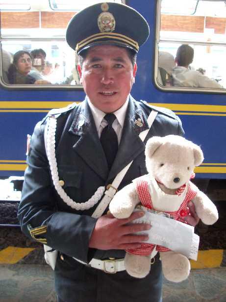 けどっ…、ホームに立ってた警備員さん(?)と一緒にお写真撮ってもらったくまよぉ〜っ♪♪♪