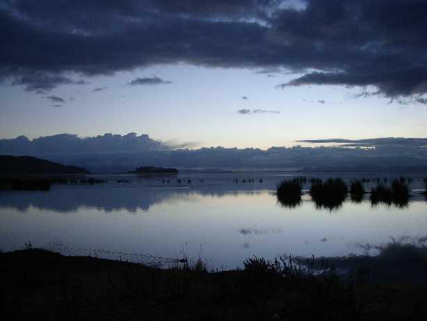▼朝5時25分のチチカカ湖♪ v(^(エ)^)v