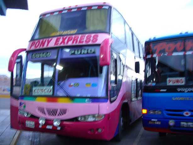 急いで撮ったからお写真ブレブレくまけど、この2階建てバスが、クスコからプーノまで、アンデス山脈の中を走ってくれたくまよっ♪