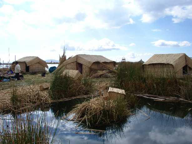 ボート乗り場からボートで約20分で最初の島、浮き草でできたウロス島に到着ぅ〜っ☆