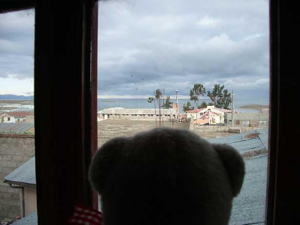 ▼カーテンを開けたらチチカカ湖が見えたくまよ☆