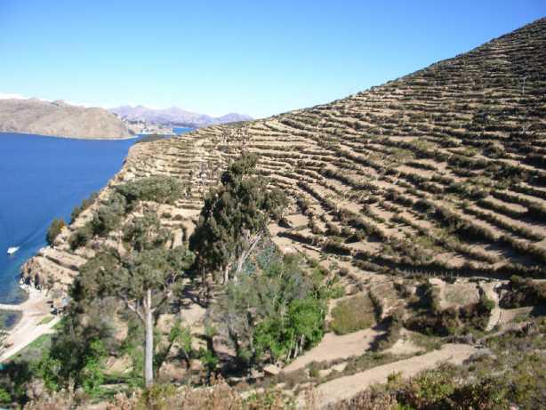 島の山道を登って行ったら、斜面を利用した段々畑が広がってたくまよぉ〜っ♪v(^(エ)^)v