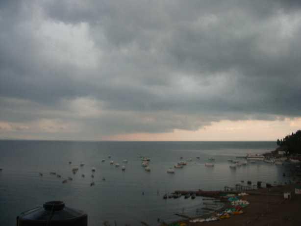 窓の外を見てみたら、チチカカ湖の上には、暗くて重い灰色の雲がかかってたくまよっ★