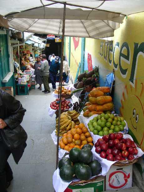 リンゴ、スイカ、オレンジ、バナナにパパイヤ…、いろんな果物が売られてたくまよっ♪♪