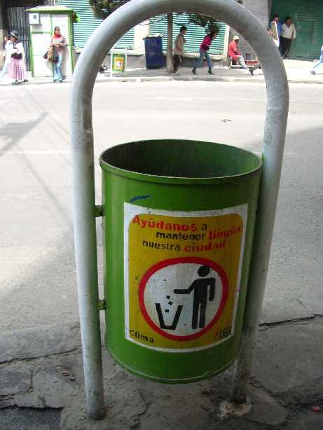 日本は、9.11のテロ以降、駅や町にゴミ箱が少なくなったくまけど、ボリビアではこうして街角に普通にゴミ箱があったくまよっ☆