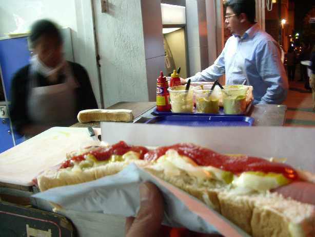 スーパーをひと通り見てちょっとお買い物して、お外に出たら、出入り口のトコでパンにソーセージとかはさんで食べるパンを売ってたくまよっ♪