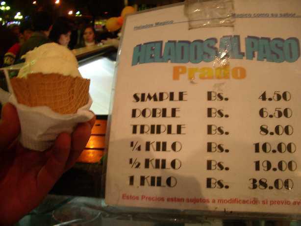 何味にするかとっても悩んだくまけど、ダブルで6.50ボリビアーノ☆
