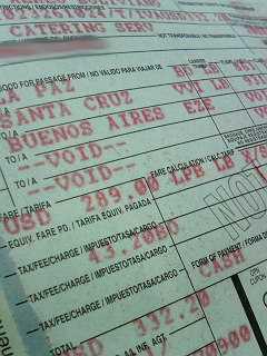 ラパスからサンタクルスを経由してブエノスアイレスに飛ぶ、LAB航空のチケット(332.20j≒¥37,539)くまっ!