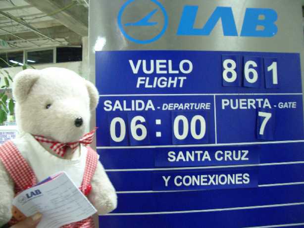 午前6時発の飛行機の搭乗の案内板が、いよいよ出たくまよっ♪♪ ゲートは7番くまっ!