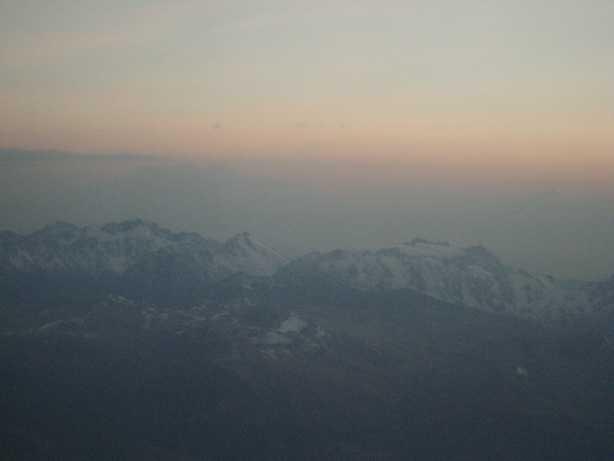 薄っすらと白い雪が積もったアンデスの山々の上に広がるお空のフチが、薄いオレンジ色がかってるの…、わかるくまかねぇ〜っ??