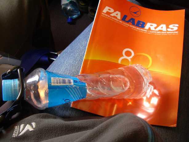 サンタクルスに着いたら、ペットボトルがこぉ〜んなにへっこんでしまったくまよっ!!笑