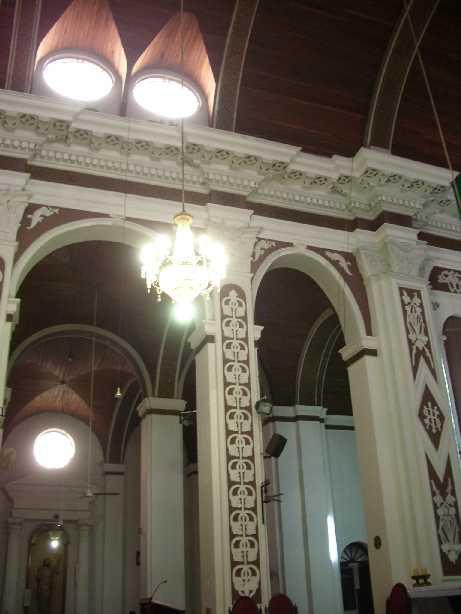 そしたらっ、白い柱に茶色いモザイクみたいな模様が描かれてたり、梁のトコに細かい細工があったり、壁の高いトコに明りとりと思われる丸いガラスの窓があったりしたくまっ☆☆