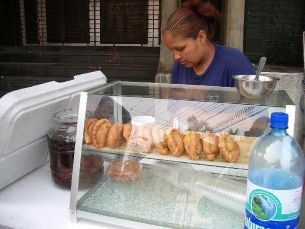 街角で、サルテーニャ屋さんがお店を出してるのを発見したくまよっ♪♪♪