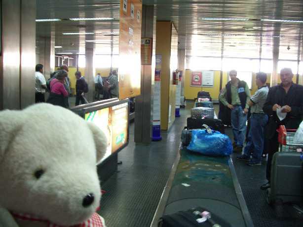 次は、預けた荷物が出て来るのをちょっとドキドキしながら待ったくまっ! うひっ☆v(^(エ)^)v