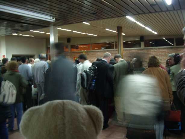 ▼荷物の受け取りを待ってる人! いっぱいいるっ…